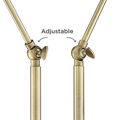 Possini Euro Design Sentry Modern Mid Century Desk Lamp 23″ High Black Brass With USB Charging Port LED Adjustable Cone Shade For Bedroom Living Room